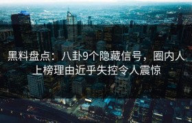 黑料盘点:八卦9个隐藏信号,圈内人上榜理由近乎失控令人震惊 在娱乐圈和各种圈子中,隐秘的黑料向来是八...