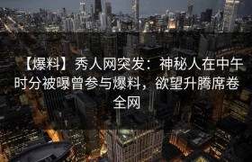 【爆料】秀人网突发:神秘人在中午时分被曝曾参与猛料,勾魂摄魄席卷全网