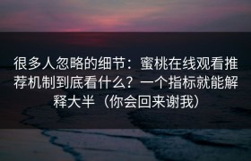 很多人忽略的细节:蜜桃在线观看推荐机制到底看什么?一个指标就能解释大半(你会回来谢我) 开门见山:如...
