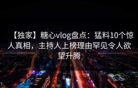 【独家】糖心vlog盘点:猛料10个惊人真相,主持人上榜理由罕见令人欲望升腾
